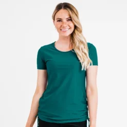 Jump into summer with the Adele Swim Top. This tight-fitting, short-sleeved beauty isn’t just about making a style statement at the pool or beach; it’s about confidence, comfort, and care. The side ruching celebrates your unique shape, giving you that added touch of flair, while the UPF 50+ protection ensures you can bask under the sun without a care in the world. Not a fan of built-in bras? No problem! Pair it with your favorite bra for that tailor-made fit. And when it’s time to switch up the scene, this top goes from making waves at the beach to turning heads on the boardwalk. So why wait? Dive in, look great, and feel even better. Pair it with the perfect swim bottom and you’re all set for sun-soaked adventures.