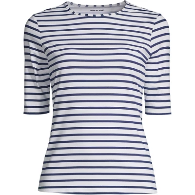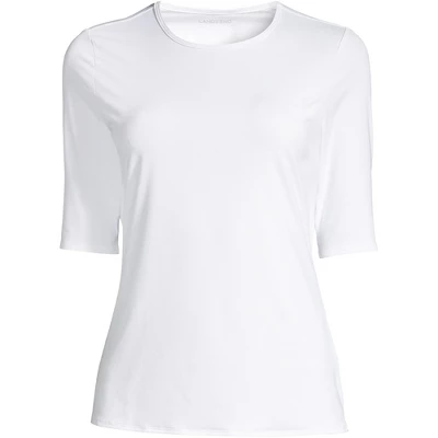 Lands’ End Women’s Crew Neck Elbow Sleeve Rash Guard UPF 50 Sun Protection Modest Swim Tee