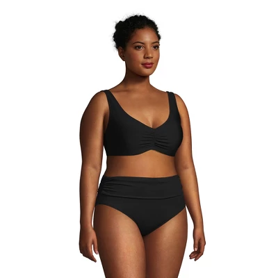Lands’ End Women’s Plus Size DD-Cup Chlorine Resistant V-neck Underwire Bikini Top Swimsuit Adjustable Straps