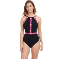 Wrapped to pure perfection Profile by Gottex offers a High Neck one piece on your next beach vacation getaway. This vibrant swimsuit is designed with a stand out striped print and features soft cups for your uniques shape, combinging comfortable fabric that stands out. Moderate coverage makes this piece an ideal swimsuit for enjoying a swim or lounging on the beach.