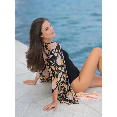 Create a chic summer look with Shiraleah’s Ramona duster style open front coverup. This cover up comes in a blush and black floral print. It the perfect addition to your summer outfit. Pair it with jeans and a tank top, over a dress or on the poolside over your swimsuit. Made from viscose material this is a light and cool piece to wear on those hot summer days. This piece has a romantic, feminine feel that will elevate any outfit to stylishly chic. It will sure to become a favorite of yours this summer. Pair with other items from Shiraleah to complete your look!
