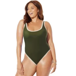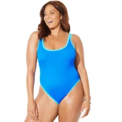 Hit the beach in style with our High Leg One Piece. You’ll look great whether swimming, sunning, or hanging by the pool. The leg is cut high to elongate your look. Designed with a scoop neckline. Like all Swimsuits for All swimwear, it’s skillfully designed to expertly flatter your figure.