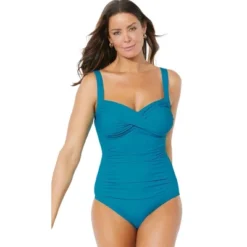 When you want to show off some beachy glamour, this is the swimsuit that lets you glow. Designed with ruched detail and a Fun, twist-front sweetheart neckline for striking style, it also has a Power Mesh lining for smoothing tummy control. Go ahead bask in its beauty.