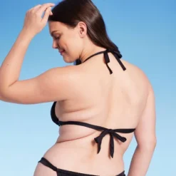 This Double-Tunnel Triangle Halter Bikini Top from Shade & Shore™ makes a chic addition to your collection of swim separates. Made from soft fabric with spandex and a full lining, this halter bikini top offers flexible comfort in and out of the water. It features a double-tunnel construction with removable cups for customizable coverage, and back and behind-neck ties provide a stay-put fit.