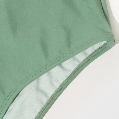 Add a playful touch to your swimwear style with our green solid ruched one piece swimsuit. The Wrap cross front design gives this one-piece swimsuit an eye-catching look. The scoop back detail lets you find your perfect fit with every wear. And you can easily remove the padding for customizable coverage.Product Code: ASL9081GAModel Wearing Size: SHeight: 5′ 5” in165 cmBust: 34 in86 cmWaist: 26 in66 cmHips: 37 in 94 cm