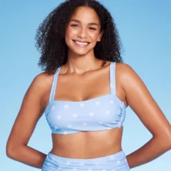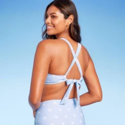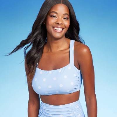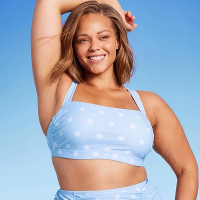 Create a simple yet fashionable swim look by wearing the Polka Dot Square Neck Bikini Top from Kona Sol™. This blue bikini top is covered with a white polka dot pattern for a beautiful contrast. Made with a mix of soft and stretchy fabric with soft lining, this square-neck swim top helps keep you comfortable whether you’re diving in, enjoying the sand or just walking around, and it comes with crisscross straps for added style. The polka dot bikini top comes with sewn-in cups for comfortable coverage, and you can pair it with a polka-dot print or solid-color swim bottom to complete a stylish swim ensemble.