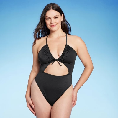 You’re sure to turn heads whether taking a dip in the water or lounging poolside in this Ribbed Plunge Front Cut-Out One-Piece Swimsuit from Shade & Shore™. Made from soft and stretchy fabric for comfortable movement in and out of the water, the ribbed one-piece swimsuit features a plunging neckline along with a high-leg extra-cheeky cut to add a chic touch to your swim style. Underwire removable padded cups let you adjust to your preferred level of coverage, while the crisscross elastic tie closure makes it easy to find just the right fit. Complete your look with a sarong or a cover-up and accessorize with a pair of sunnies and flip flops.