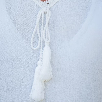 Elevate your beachside glamour with our Scalloped Lace Mini Cover-Up Dress, a captivating ensemble featuring delicate scalloped lace details that exude feminine charm, making it the perfect choice to effortlessly transition from the sand to a seaside cafe in style.Product code: CAA07B3E058CCModel Wearing Size: SHeight: 5‘6″ in168 cmBust: 34 in86 cmWaist: 25 in63 cmHips: 30 in 76 cm