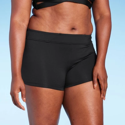 - Boyshort swim bottoms lend coverage and modesty