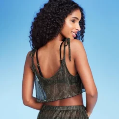 Shine wherever you go wearing the Tie Detail Lurex Cropped Cover-Up Dress from Shade & Shore™. Perfect for wearing over you favorite swimsuit, this black cover-up with tie detail at the shoulders is made from soft fabric with added metallic fiber for a glamorous look. Designed with lurex, this cropped cover-up dress in black makes a beautiful addition to your swimwear collection.