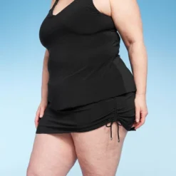 Whether you’re taking a dip in the pool or lounging in your backyard, soak up the sun in style with this Swim Skirt from Aqua Green®. This mid-rise swim skirt is crafted for comfort and adjustability to customize your style, with a built-in brief for a completely secure fit. This pull-on swim skirt is designed with a flirty ruched side tie design for an on-trend look. Pair this skirt with any solid or printed Aqua Green Tankini Top to complete your favorite swimsuit look.